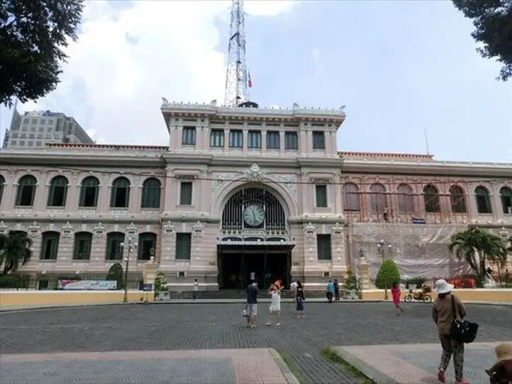中央郵便局はベトナム語の正式名称だと「サイゴン中央郵便局」。それからも分かるように、旧都市サイゴンの中心地に建つ郵便局でした。現在橙色の派手な外観となっていますが、これは2015年に塗り替えたもの。
