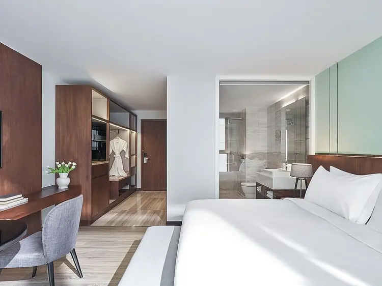 快適なキングサイズベッドとシンプルで機能的な空間。観光にもビジネスにも最適なお部屋です。