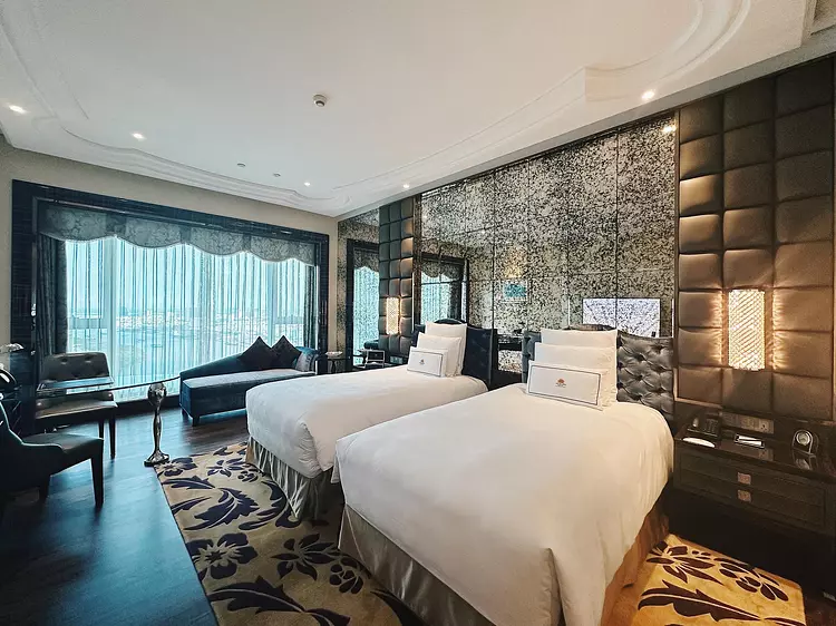 明るく開放的な「デラックスルーム」は、洗練されたクラシックなインテリアとアースカラー×プラチナ調の上品な色合いが特徴。オーダーメイドの仕上げが光る、都会的でグラマラスな雰囲気を演出します。すべての客室からは、ホーチミン市街またはサイゴン川を望む絶景が広がります。