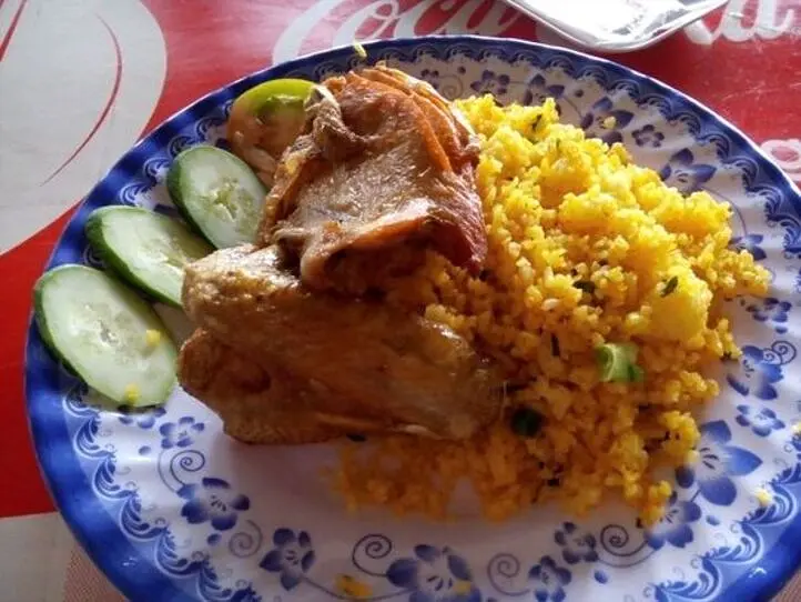 「コム=ご飯」、「ガー=鶏」という意味のこちらは、中華要素が調和した鶏蒸し飯。ご飯は通常の白米、もしくは鶏出汁が効いたものかのいずれかを選ぶことができます。肝心の鶏肉は店によって調理法が異なり、最近の流行はフライドチキンのように油で揚げたもの。