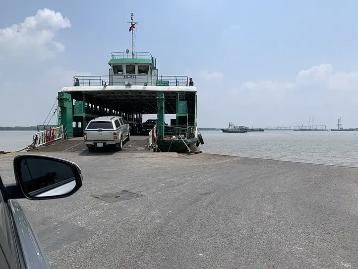 中心地から、ホーチミンの7区を抜けて向かった先で、フェリーに乗って移動します。