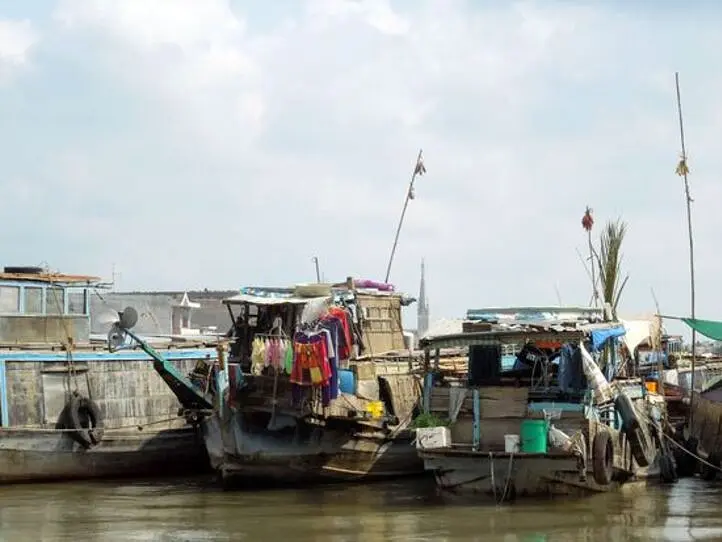 カイベーはミトーを越えてさらにメコンデルタの奥へ進んだ小さな町。サイゴン時代は富裕層がカイベーの土地を買って、別荘を建てるのが一種のブームだったことから、現在でもコロニアル建築の洒落た邸宅が点在しています。その脇に流れるメコン河の支流をスピードボートに乗って、沖まで行きます。
