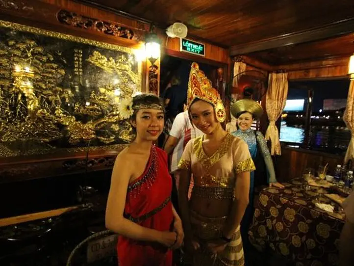 クルーズ船では、主に甲板に出て大都会ホーチミンのネオンを愛でたり、食事をとりながらベトナムの伝統舞踊や民謡を鑑賞することができます。食事はビュッフェとコース、アラカルトがあり、ツアーのコースによって種類が異なります。乗船から終了までおよそ2時間程度の船旅なので、下船後にさらにバーなどに繰り出して夜の観光を再開することもできます。