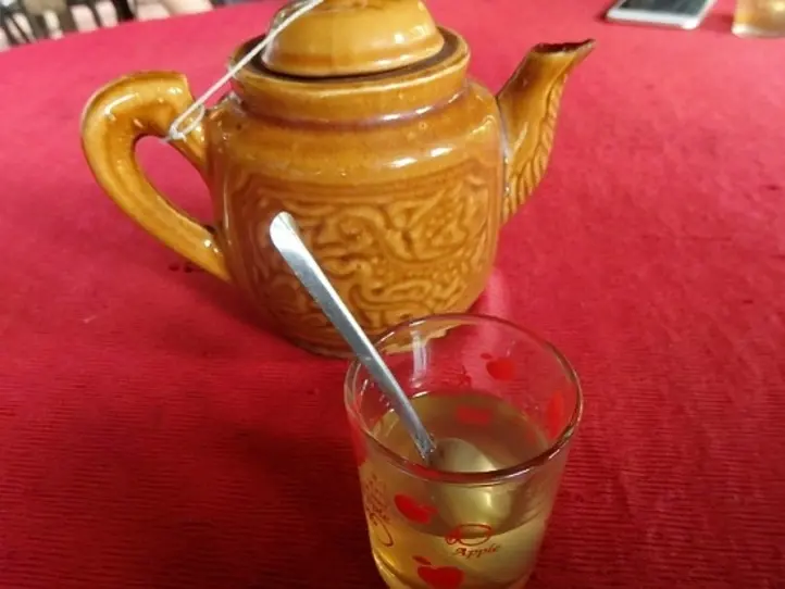メコンデルタでとれるはちみつを熱いお茶に混ぜて飲みました。その後、はちみつやローヤルゼリーの売り子さんが来ました。