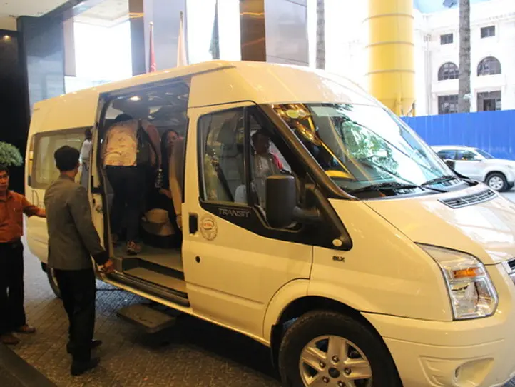 旅行会社のツアーガイドが宿泊先ホテルに迎えに来てくれたのは18時。ほぼ定刻だったので、参加者は遅れないようにしましょう。ツアーガイドに連れられて混載車に乗り込み、およそ10分ほどで水上人形劇に到着。