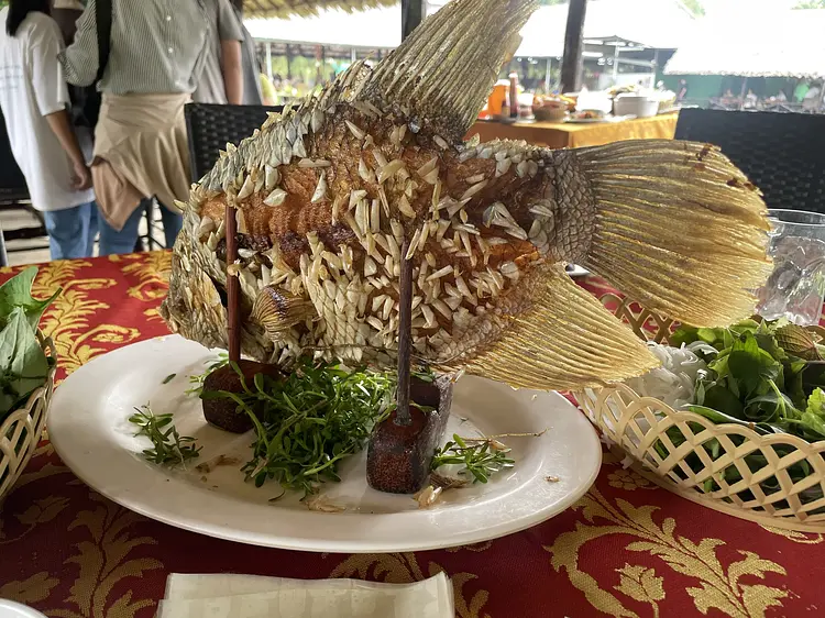 夕食は、ベトナムの名物料理をお召し上がりいただきます。突き出した鼻が象のように見えることから名付けられた名物の「エレファントフィッシュ」や、春巻きやバインセオといったベトナムを代表するメニューを中心にお召し上がりいただけます。 |